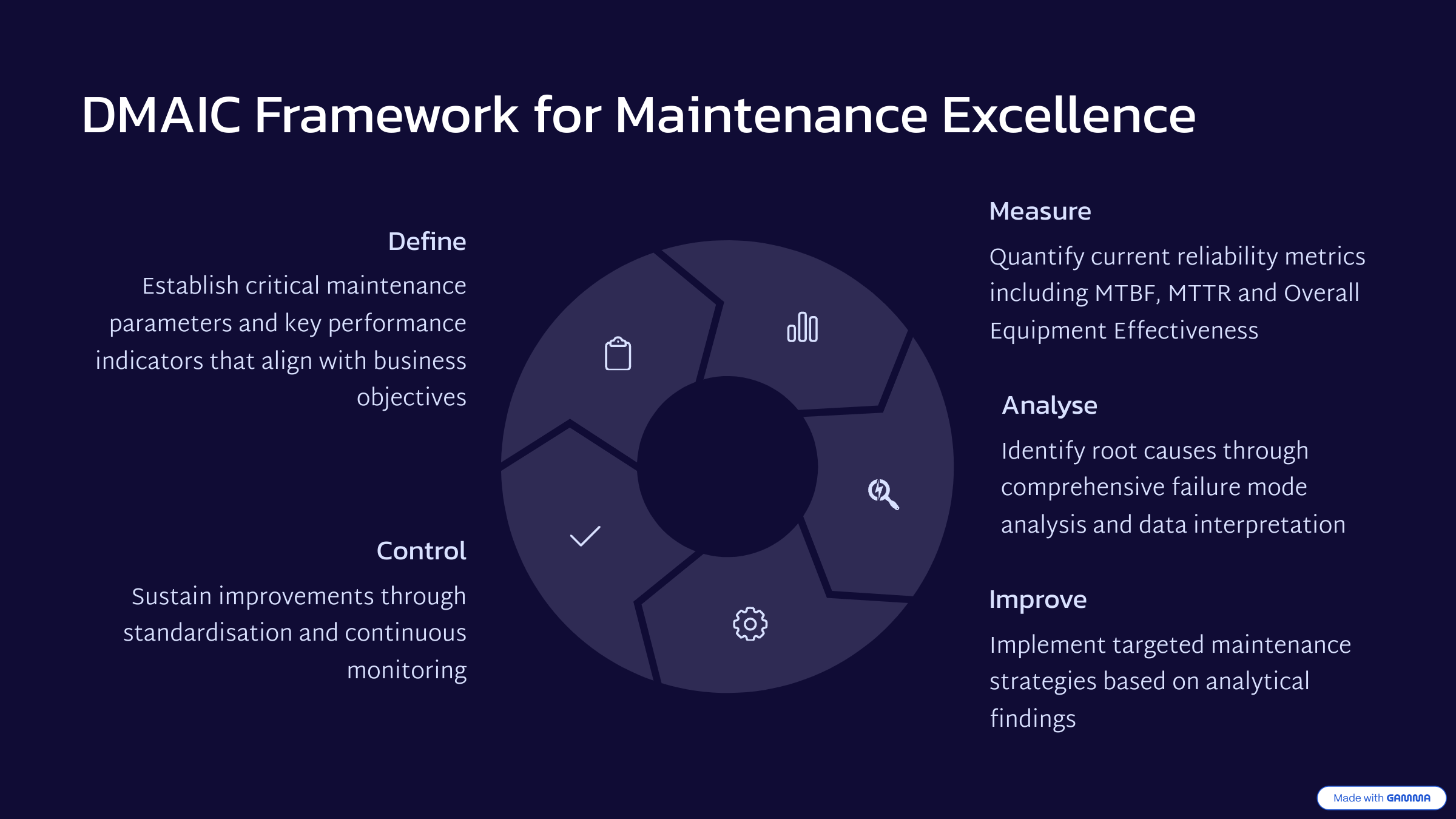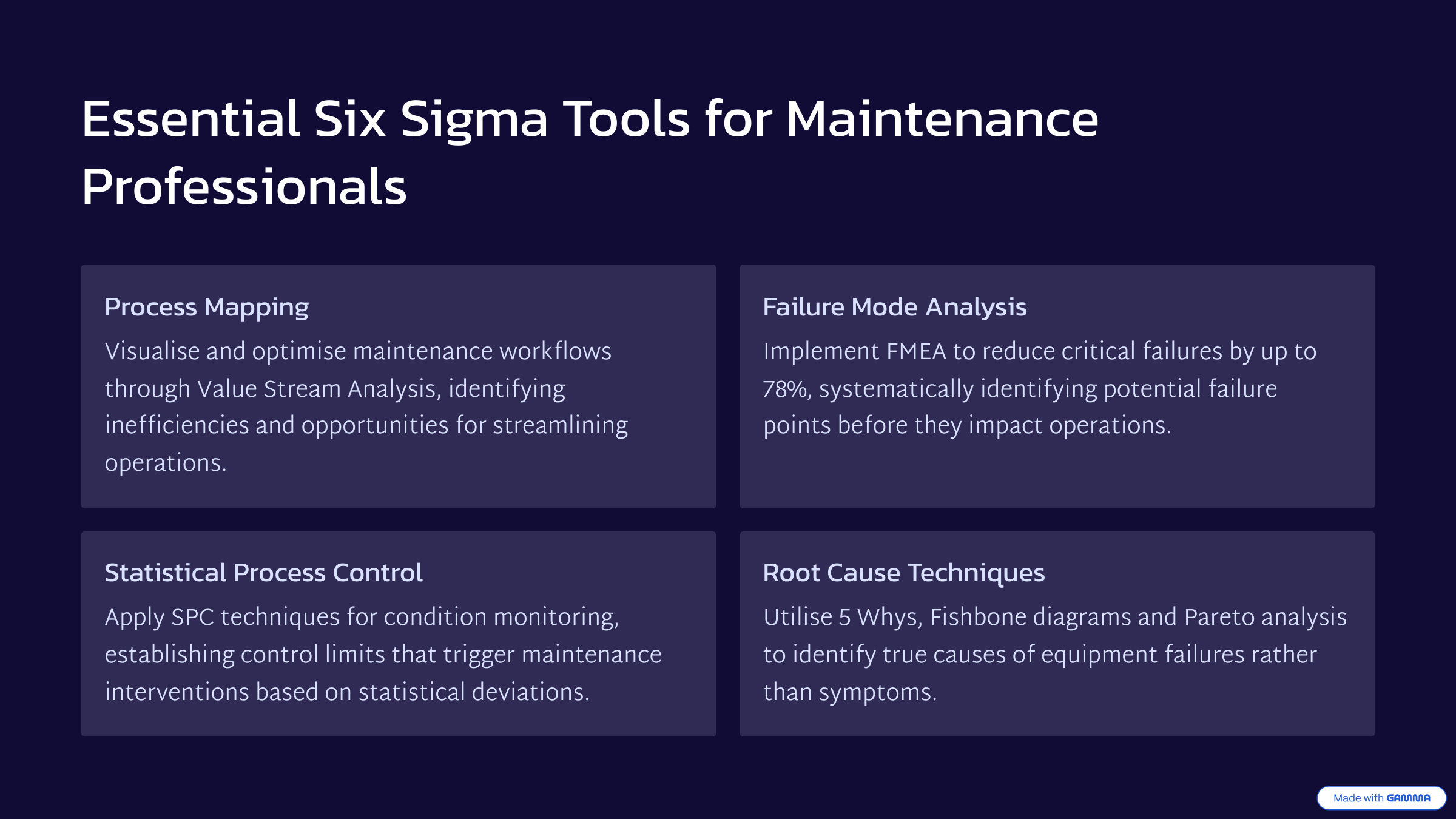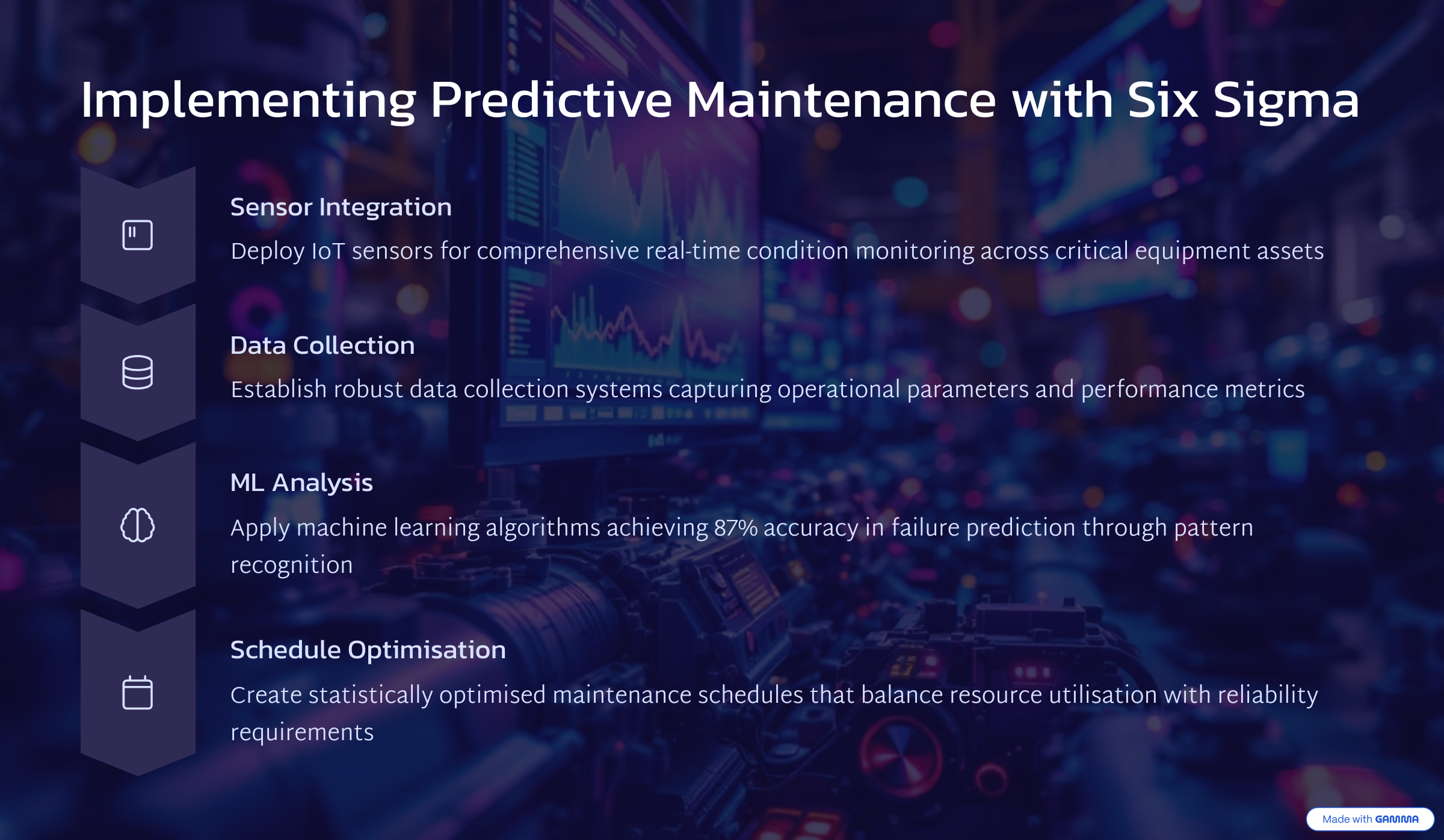 The Six Sigma approach transforms traditional reactive maintenance into proactive, data-driven strategies that significantly enhance equipment reliability and operational efficiency.