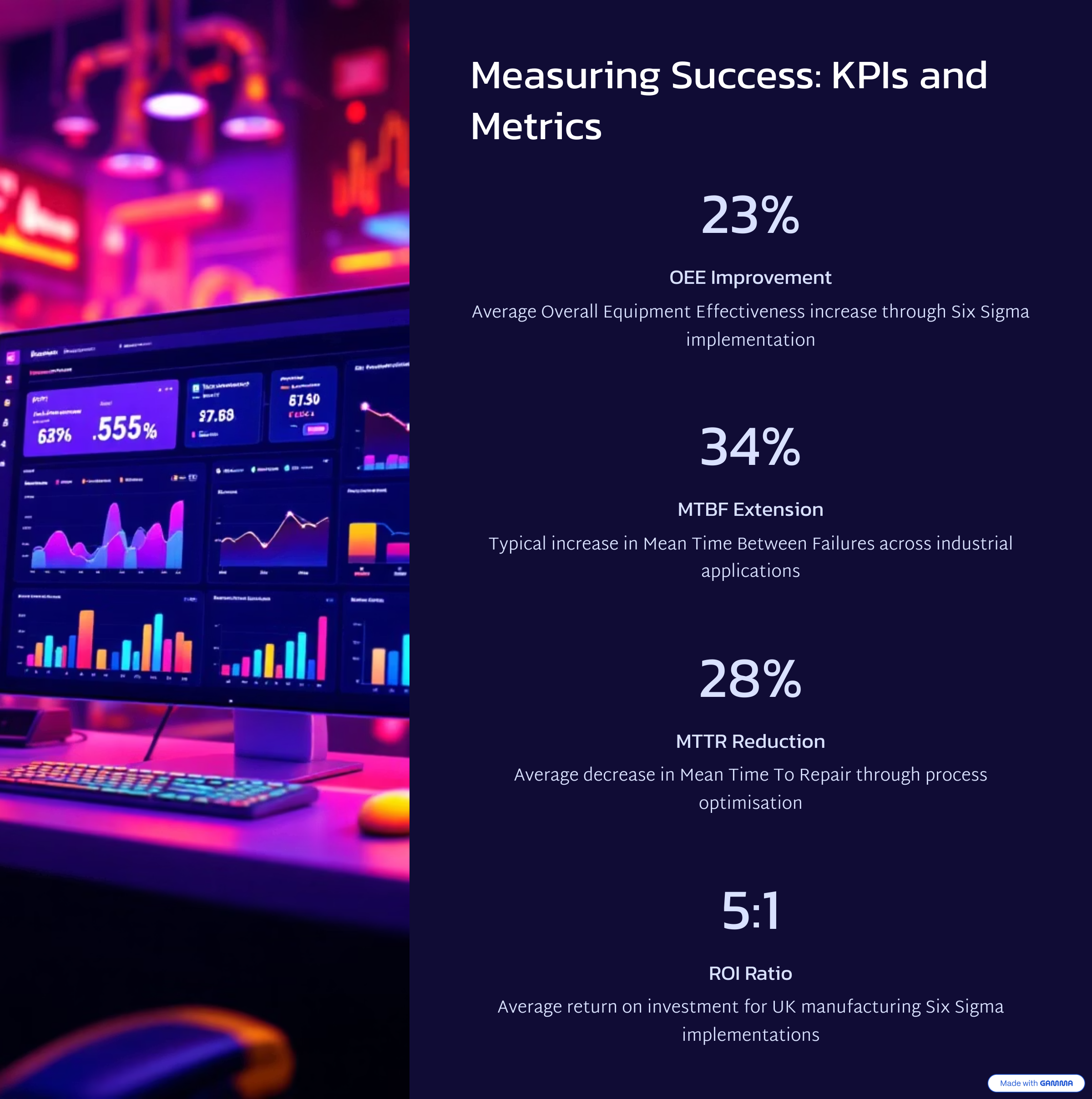 Six Sigma targets 99.99966% defect-free processes, representing a statistical approach to maintenance perfection that unlocks £4.2 billion in annual savings potential across UK industrial maintenance operations.